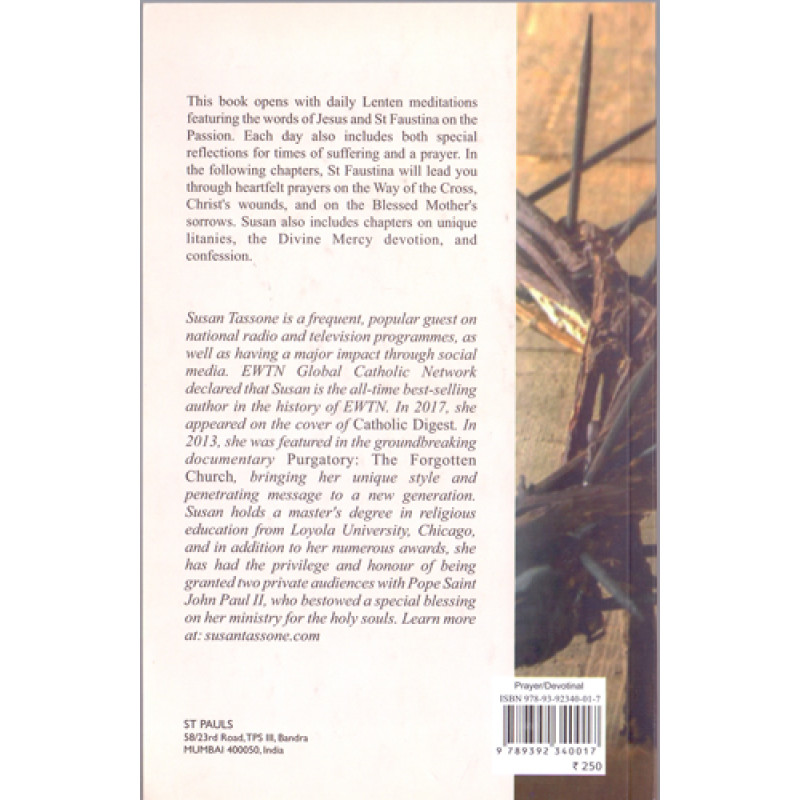 St. Faustina Kowalska (1905-1938) immersed herself in a vision of Christ’s Passion that became a predominant theme in her famed Diary. In Praying with Jesus and Faustina During Lent and in Times of Suffering, award winning and best-selling author Susan Tassone presents the Diary’s words of Christ and St. Faustina on his sorrowful Passion. The book will engage you in Jesus’ horrific sufferings, giving you grace, light and strength to bear your own sufferings.